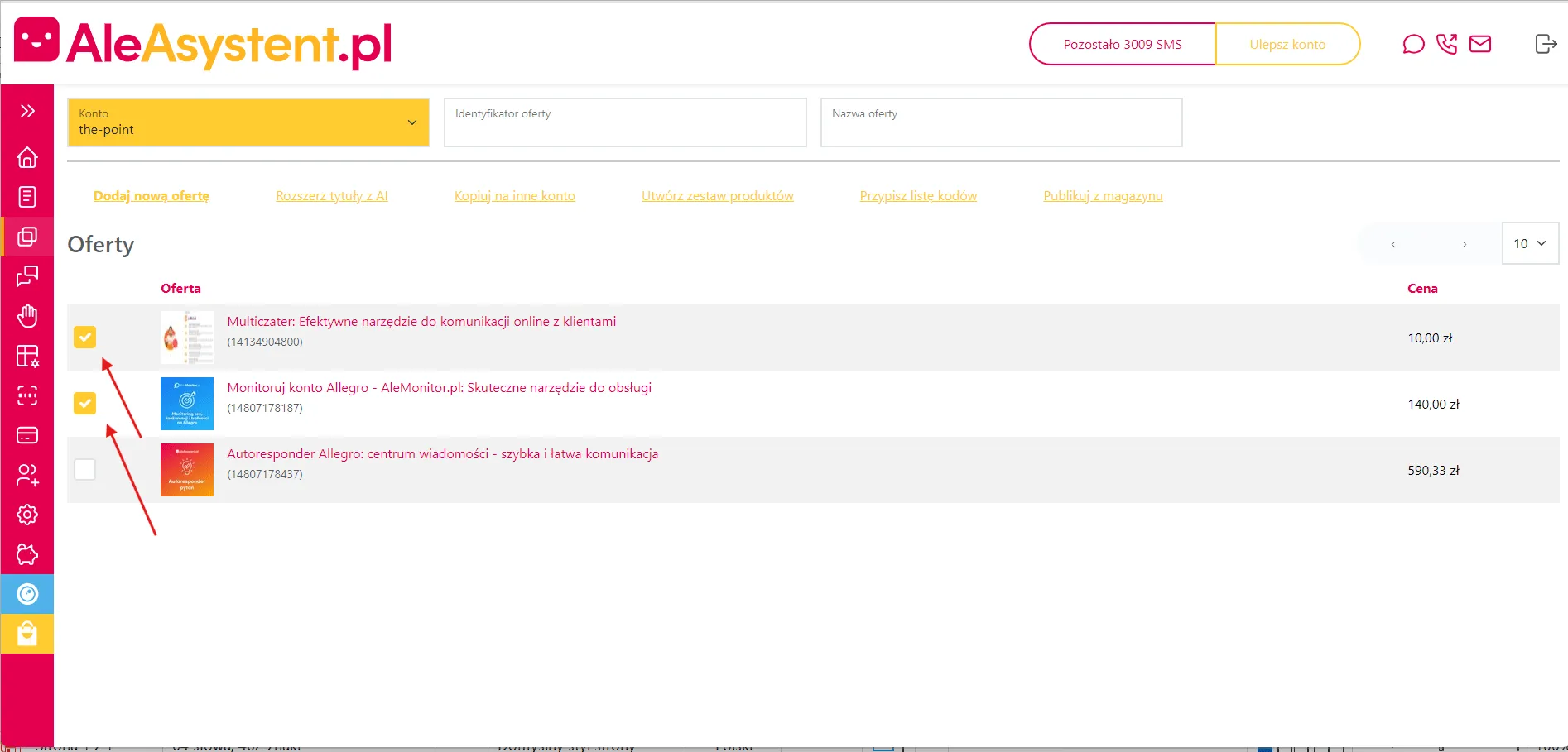 The next step is to select the offers whose titles we want to expand. We do this by checking the checkboxes next to the offers: