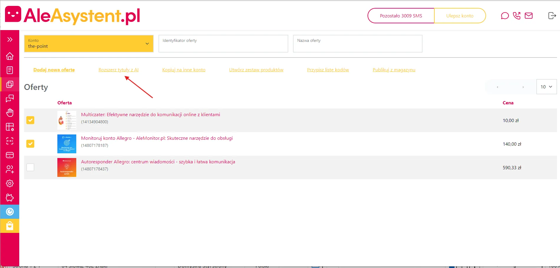 Using the full limit of 75 characters in the auction title is one of the simplest and yet most effective ways to immediately increase the visibility of your offers in Allegro's search results. Many SEO tools require time-consuming analysis and manual modification. The AI Title Expanding feature in AleAsystent completely eliminates this problem by operating in bulk. Artificial intelligence analyzes your current, shorter version of the title and intelligently adds missing, relevant keywords and product details. This way, you can optimize hundreds of "tired" auctions within minutes, responding to a significantly larger pool of customer queries, which directly translates into a higher ranking.