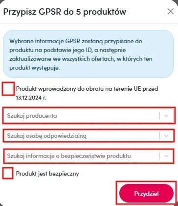 The function in AleAsystent allows you to filter listings that require improvement and bulk assign GPSR. Check how to easily and collectively improve the required parameters in your listings.