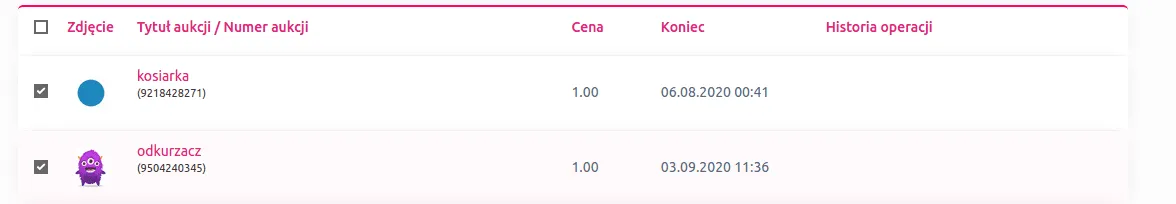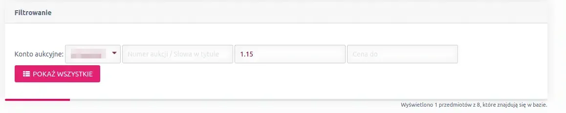 An additional convenience is the auction filtering tool, which shows results immediately upon entering a parameter without needing to click "search". You can filter by prices, names, numbers, and Allegro accounts.