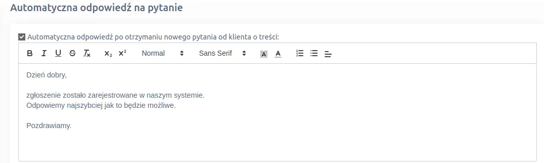 Odpowiedź automatyczna na pytanie klienta oraz w dyskusji
